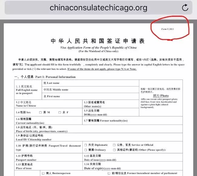 首先「找到正确表格」,驻芝中领馆建议,直接登录领馆官网(www.chinaconsulatechicago.org),接着点选「签证护照」栏目中的「签证」,就可以看到「下载表格」,点击此连结后,即能找到2013年版的「签证申请表」了,领馆提醒,下载后请确认表格右上角的编号应为「FormV.2013」。